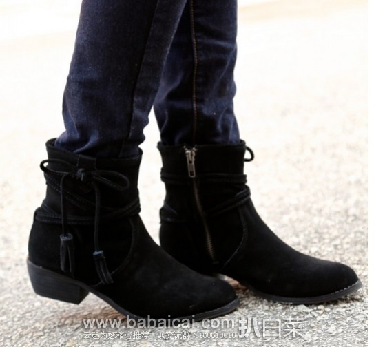6PM:Minnetonka 迷你唐卡 流苏吊坠粗跟短靴 原价$100,现史低$39.99,到手¥335,两色可选