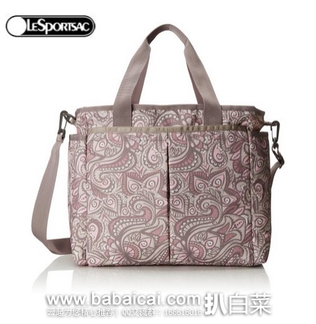 LeSportsac Ryan Baby Diaper Bag Carry On尼龙手提单肩包,采用力士保专用防雨耐磨的尼龙布面料,尺寸为34cm*33cm*17cm,外侧的一边有一个带拉链的大侧包,外侧的另一边是一个不带拉链的大侧包,方便放置纸巾,湿巾,围嘴等随时需要拿出的东西。容量够大,当做妈咪包babaicai.com塞满宝宝用品都没有问题。