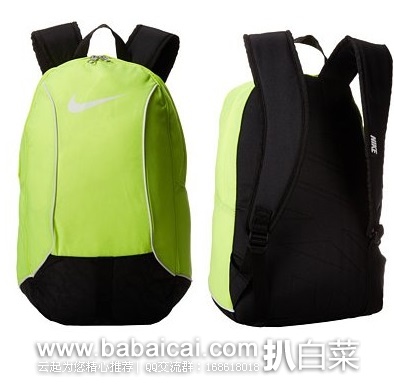 这款Nike Nike Brasilia 6 Med 耐克双超经典亮骚绿色双肩背包,采用100%聚酯材质,轻量耐磨,容量可观,两个隔层,第一隔层是杂物袋,有笔袋、拉链小口袋跟专用的钱包锁链,第二层是主隔层,容量很大,能够容纳日常必需品,不过没有笔记本专用隔层。尺寸约为36*18*41cm,能够满足日常出行及短途出差等需求,配色鲜亮,配成情侣款也不错。