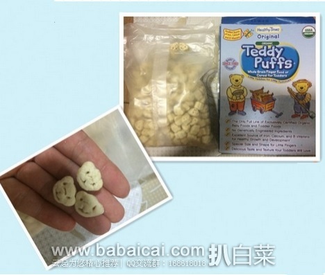 这个Healthy Times, Organic Teddy Puffs, Original泡芙味道不错,有机糙米粉、有机玉米粉、有机全麦粉做成的,只加了未精炼的蒸发甘蔗汁,只有谷类天然的米香和淡淡的甜味,也分量挺多的。不仅小孩子爱吃,很多大人也买来当零食吃。