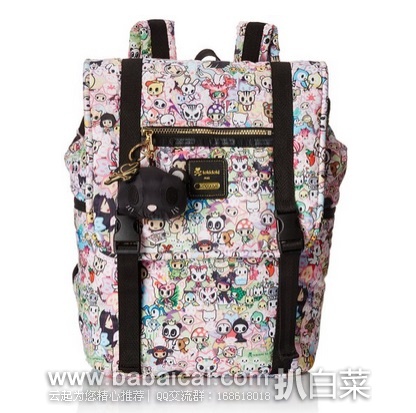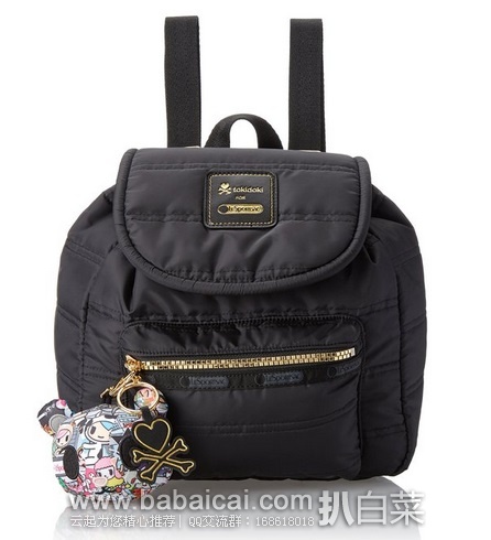 4、Tokidoki for LeSportsac Piccolina Backpack 联名限量版黑色带卡通挂件双肩包,现$178,可用8折优惠码SAVEONBAGS,折后$142.4。亚马逊购买地址>>