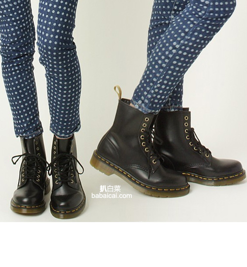 Dr. Martens Women's 1460 Originals Eight-Eye Lace-Up Boot女士马丁靴,是马丁靴最经典的1460款,江湖上有只有1460才能被称为马丁靴的说法,因为它是马丁大夫的首个设计。这个款式本来是为 Docklands巡警而设计的。最具标志性的就是它的8孔鞋帮,以及鞋边黄色针步及独特的鞋印图案,在当年大获好评,成为流行数十年的潮流文化标记。鞋 面和鞋底是缝合的,而非胶粘,所以非常牢固,即使穿着多年也不会担心开胶。马丁靴标志性的Air Wair鞋底自然也必不可少,提供缓冲加强舒适感。