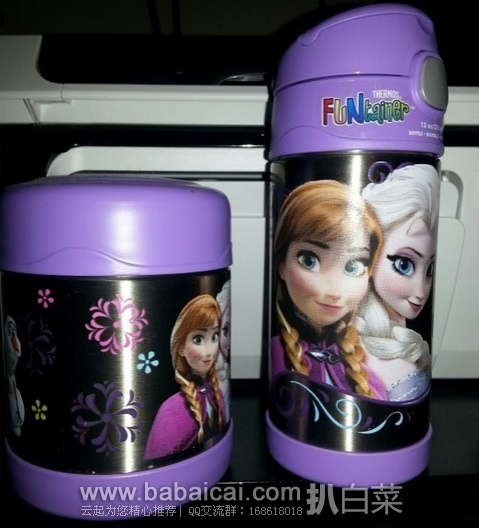 Thermos 12 Ounce Funtainer Bottle, Frozen膳 魔师儿童保温吸管杯,容量为355ml,相比之前F4001的老款,最大区别就在于上盖增加了一个可折叠的拎手,不用担心手滑摔坏杯子了,采用双层真空抗 摔不锈钢瓶身,可保冷12小时(7度以下),保热6小时(42度以上)。食品级PP塑胶杯盖不含双酚A(BPA),大开口设计便于清洗,抗摔设计,采用安 全开关,一按即可弹出吸管,并且完全防漏,适合儿童使用,婴儿平时出门带点热水冲奶粉也很好用。