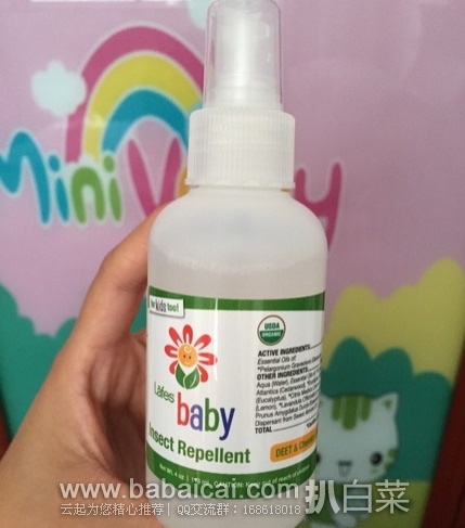 Lafe's Natural Body Care, Baby, Insect Repellent天然有机宝宝驱蚊液使用经过有机认证的独家天然有机植物精油配方,质地温和,是不含避蚊胺和化学成分的驱蚊水,有效抵御驱除讨厌的蚊虫对宝宝的骚扰。塑料瓶,喷嘴设计,用起来很方便。橘子香型,喷上有清凉的感觉。适用于任何肤质。出门带着也很方便。