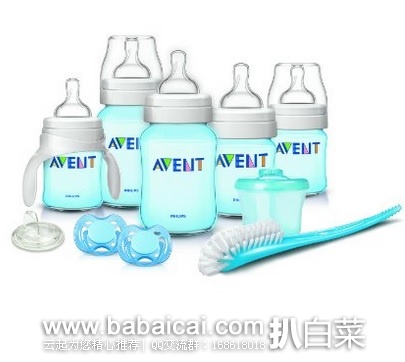 Philips AVENT Classic Plus Newborn Starter Set套装包括2个9oz(270ml)的奶瓶,3个4oz(120ml)的奶瓶,一个香草安抚奶嘴,一个瓶刷和一个奶粉储存筒。