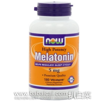 NOW Foods Melatonin 5mg Vcaps褪黑素片,是Amazon睡眠药物产品销量第一,荣获2014年Vity 补救自然睡眠大奖。其实就是国内的脑白金,主要成分都是褪黑素,每粒含量5mg,可以帮助提高睡眠质量,可以调整 人体生物节律,达到改善睡眠的作用。能帮助调节睡眠和清醒周期,调节时差, 促进脑细胞生长,有效恢复大脑疲劳。每瓶180粒,每天1粒,睡前半小时服用即可。