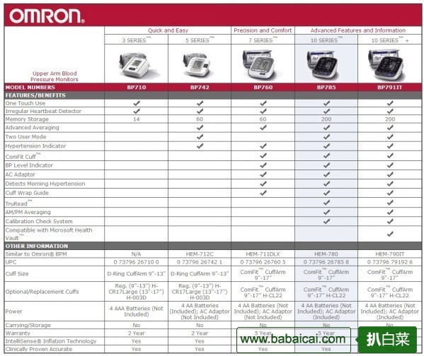 欧姆龙Omron BP791IT上臂式血压计是Omron 10系列旗舰款,较次旗舰BP785多了Microsoft HealthVault功能,不过国内用户基本用不到,然而BP785目前售价$62.24,比旗舰BP791IT还要贵,所以还是推荐旗舰BP791IT。