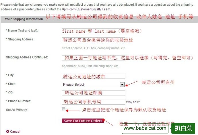 6pm官网支持信用卡,需要转运,购物时邮寄地址填写和账单地址填写参考本帖最后两个图