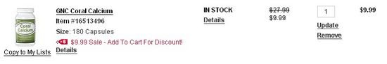很多好价~~.(加入购物车显示折扣),除了今天此贴推荐的这款珊瑚钙,另外还推荐三倍鱼油,左旋肉碱,GNC水解胶原蛋白复合维生素等,还有男女综合维生素,很多值得买的哦,大家根据需要挑选吧!