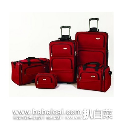 Samsonite 5 Piece Nested Luggage Set新秀丽旅行箱五件套包括26寸旅行箱、22寸登机箱、旅行袋、手提包、盥洗包各一个。旅行箱带有2个滑轮和拉杆,十分方便。Samsonite新秀丽的拉杆箱单从外观讲的话都从未和时尚脱节过,从高品位,多功能,豪华系列到低价位结构简洁、朴实的大众系列,一应俱全。质量的话,新秀丽一般采用按钮拉杆,可调节拉杆长度,耐磨橡胶滑轮,一般都具有很好的防震效果。广受商务认识和各大明星的喜爱。