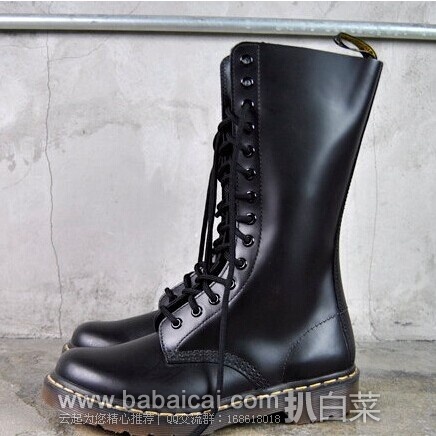 Dr. Martens Original 14 Eye Boot女士长筒马丁靴,采用真皮鞋面,12英寸高度鞋帮,前系鞋带,适合长腿妹纸,时尚且修饰腿型,配备马丁靴标志性的Air Wair鞋底。鞋面和鞋底以Goodyear坚固式缝合制法缝合,而非胶粘,所以非常牢固,即使穿着多年也不会担心开胶。