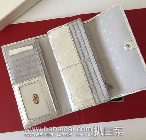 Fossil Marlow Flap Clutch化石女士三折翻盖钱包,采用100%真皮面料,复古做旧铜扣,外形尺寸为长19 x宽10 x 高2.5厘米,内部包含多达12个信用卡槽,2个钞位,1个带拉链内袋,1个证件窗,背部还有一个拉链滑袋,外形好看,功能也很实用。