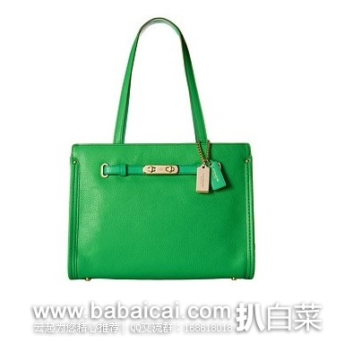 COACH Polshd Pebble Leather Small Coach Swagger Tote 女士通勤单肩手提包,2015年新款,采用柔软的鹅卵石皮革材质,包内设计有拉链小口袋+多功能口袋+手机插袋,适合放置一些小物品和手机,主袋开口采用拉链封合,保证安全及隐私。外部尺寸30*16.5*23厘米,肩带长50.8厘米,可调节可拆卸。搭扣处精致的硬件充满质感,同色织布内衬,精致而耐用,草绿和橘红青春靓丽,裸色更显轻熟优雅,是一款逛街通勤均适合的包包。