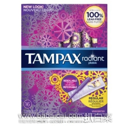 Tampax 丹碧丝是世界上第一个内用卫生棉条的发明者,目前属于宝洁旗下,是美国销量第一的卫生棉条品牌。这款Tampax Radiant Plastic Unscented Tampons丹碧丝珍珠系列新版卫生棉条,女人我最大里推荐过的牌子。带有CleanGrip和CleanSeal的新技术,舒适度和可靠性都有所提 升,包装共有16支正常流量的卫生棉条。相比卫生巾,卫生棉条的好处是没有潮湿闷热的感觉,并且可以穿轻薄的衣服,这一点在夏天非常有吸引力,另外因为吸 收后会膨胀,所以也不用担心侧漏和潮涌,没有任何异样的感觉。