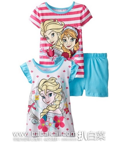 2、Disney Little Girls' Frozen 3 Piece Anna Elsa Short Set 迪士尼冰雪奇缘三件套,包含两件T恤和一条短裤,色彩鲜艳,T恤和短裤可搭配穿着也可以单穿,纯棉材质,舒适亲肤。不同颜色和尺寸价格略有不同,最低价只需6.76美元一套。亚马逊购买地址>>