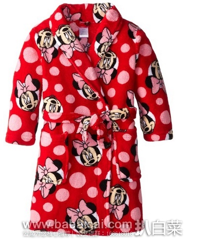 6、Disney Little Girls'Mouse Pink Dots Bathrobe 迪士尼红色米妮浴袍,采用聚酯材料,舒适不起球,可以机洗,冬天宝宝沐浴后穿着方便。现$16.06,不同尺寸价格略有差别。亚马逊购买地址>>