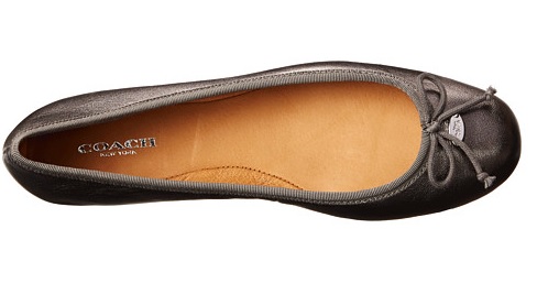 这款COACH Florabelle女士平底鞋,采用非常柔软的真皮材质鞋面,金属色的皮质很有质感。鞋头使用蝴蝶结鞋带和金属LOGO装饰,柔软的真皮里衬和鞋垫,和高端正装鞋一样,鞋底都是真皮的。