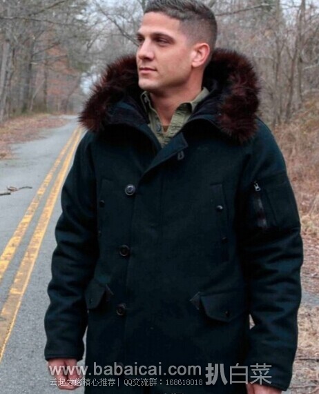 Alpha Industries 阿尔法 男士羊毛呢保暖大衣 原价$225 ,现2.5l历史新低价$56.03