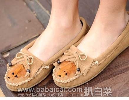 Minnetonka 迷你唐卡 Feather Kilty 羽毛款莫卡辛鞋 原价$48.95,现历史新低$27.97 , 到手¥240