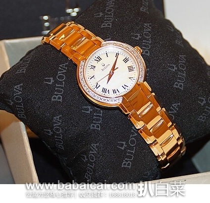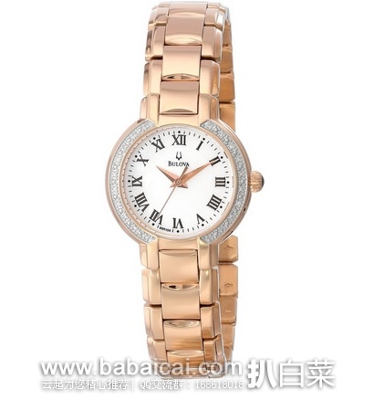 Bulova 宝路华 珍珠母贝+镶钻+玫瑰金手镯式女表原价$499,现$122.9,公码75折历史新低$92.17