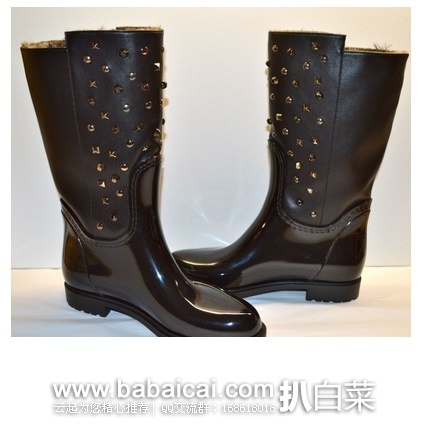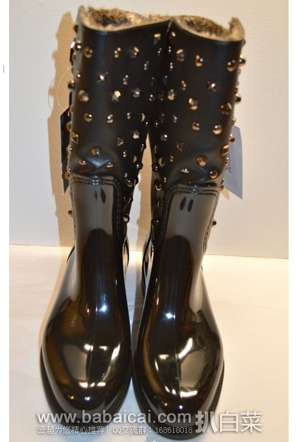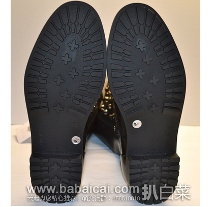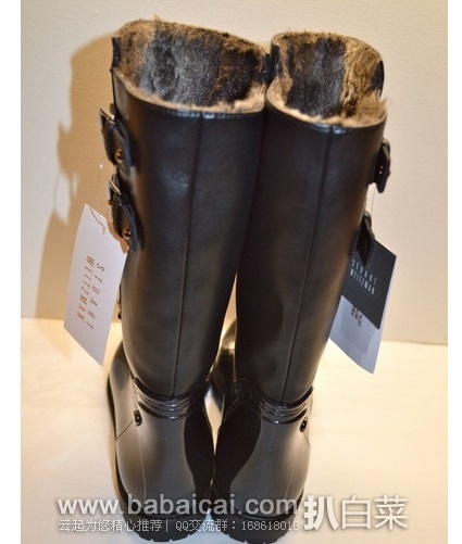 Stuart Weitzman Loverain 斯图尔特·韦茨曼11.25寸马靴,采用合成革鞋面+真皮鞋筒,雨、雪天穿也不用担心,搭配前卫的铆钉装饰,浓浓的机车朋克风扑面而来,绝对吸睛利器。织物衬里和鞋垫,一脚蹬设计,少了弹力布,所以相对筒围会大一些方便穿脱,平底马靴款型,耐磨防滑橡胶鞋底。