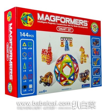 3、Magformers Smart Set 144 Pieces 磁力拼图玩具144件,原价$250,现特价$125