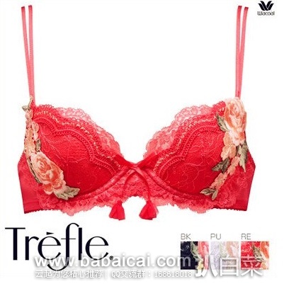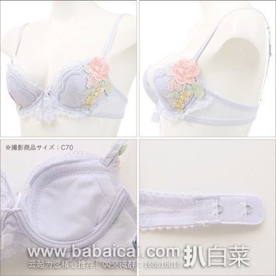 1、 华歌尔蕾丝花朵内衣,五折秒杀价8640日元,合¥458。有黑色/紫色/红色可选,尺码有B65/B70/B75/C65/C70/C75/C80。乐天国际购买地址>>