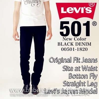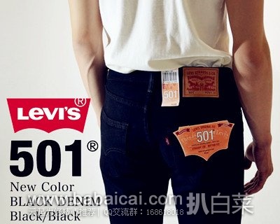 4、 Levi‘s里维斯男士501黑色牛仔裤,五折秒杀价5940日元,合¥315, 有码W29/W30/W31/W32/W33/W34 。乐天国际购买地址>>