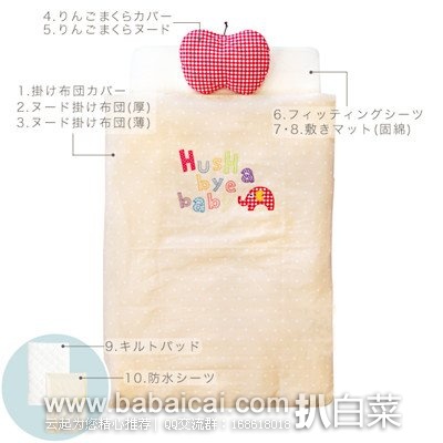 3、 婴儿床上用品10件套,五折秒杀价12474日元,合¥661。乐天国际购买地址>>