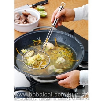 WMF Profi Plus Non-Stick Skimming Ladle德国完美福不锈钢漏勺,长度约35cm,勺柄采用WMF独创Cromargan@18/10不锈钢材料,不易腐蚀也不会生锈,易于清洗,长期使用也光亮如新,圆柱柄便于抓我,尾部带挂钩。勺头为耐温不锈钢网,烹饪一些油炸、煮食等完全不在话下,捞汤圆更是得心应手,不用担心粘在勺上了。
