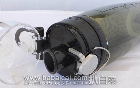 专利Intak一键开启杯盖,方便单手操作饮水,并且不会滴漏。带挂环,防滑颗粒杯身便于抓握,杯盖上的旋转标尺可用于记录一天的饮水量,细节设计十分贴心。