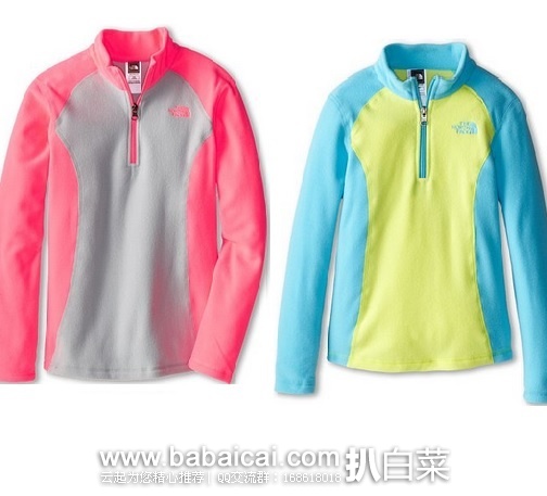 The North Face北面成立于1966年,是美国上市公司VF集团的重要一员,总部位于美国加利福尼亚州一个获得LEED白金级认证的节能环保产业园内,致力于为户外运动员的每一次严酷探险提供专业装备。这款The North Face Kids Glacier 1/4 Zip (Little Kids/Big Kids)童款套头抓绒衣,采用Polartec超轻抓绒材质,良好的透气性和速干性,两色拼接设计,春秋外穿休闲舒适,冬季可作为夹层穿在防寒服内,无论是户外运动还是日常穿着皆适合。