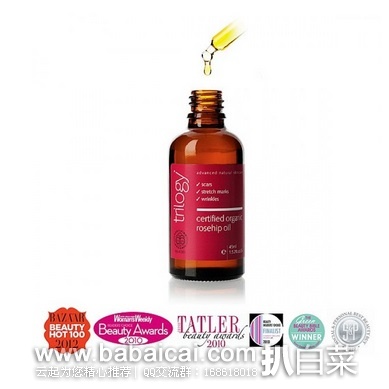 新西兰超有名的有机护肤品牌Trilogy趣乐活,成分来自新西兰纯净物污染的沃土上的植物高浓度萃取,不含任何人工合成填充剂,人工香料,矿物油等化学添加,就连防腐剂都是用的葡萄籽油这种天然防腐作为补充!很多人一开始使用Trilogy趣乐活的第一件单品都是从这款Trilogy Certified Organic Rosehip Oil 趣乐活100%有机野玫瑰果油开始,然后疯狂爱上!