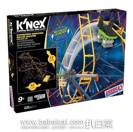 这款K'nex Hyperspeed Hangtime Roller Coaster Building Set超高速云霄飞车拼插积木玩具,利用工程学原理,创建梦幻般的过山车循环轨道,鼓励孩子充分发挥想象力和创造力,培养孩子的成就感。该产品共包含628个组 件,需要3节5号电池供电(电池自备)。非常不错的过山车积木组合,准备来一场星际冒险吧!