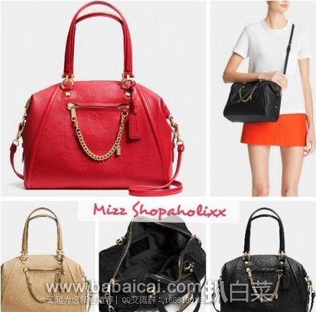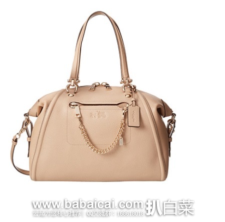 COACH Pebbled Prairie Satchel w Chain 蔻驰 女士真皮手提包,采用轻量级鹅卵石花纹真皮材质制成,高档五金件,线条流畅优雅。链条拉锁装饰,包包耳朵可拉伸,一个包两种LOOK,可以迷人可爱,又能优雅精致。织物内里,内置多功能口袋,肩带可调可卸,可单肩可手提。裸色知性,红色吸睛,都是出街或通勤不错的选择。