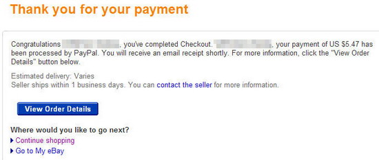 最终确认价格,然后跳转到ebay页面,点Confirm payment。至此为止,出现下面的页面,就是购买和支付过程已经全部完成。