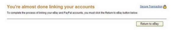 如果账号检测无误就会出现下面的页面,点击“Return to eBay”。这下,账号关联已经完成。