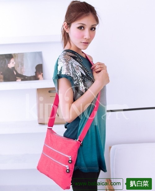 KIPLING吉普林大号斜挎包粉色特价$40.95 鞋服8折$32.8