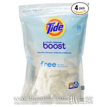 Tide 汰渍高评价黑科技 Boost 无香无彩漂衣物污渍清洁剂28颗*4包原价$41.31,现历史低价$15.94,直邮无税