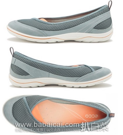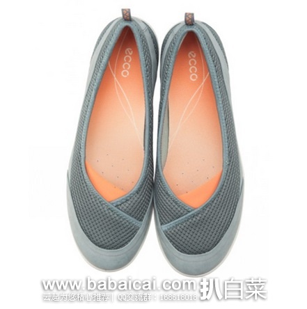 ECCO(爱步)世界四大休闲鞋类品牌之一(ECCO,TOWINNER,CLARKS,GEOX),总公司设于丹麦。其基本设计哲学是为顾客设计及制造最舒适的上班、消闲及喜庆节日穿著的鞋类产品;使人们把行走当作一种真正的乐趣。这款ECCO Women's Biom Lite Ballerina Flat爱步女士轻巧休闲鞋,属于BIOM系列,采用磨砂皮鞋面,织物内衬,弹力布鞋口,穿着更舒适贴合。直接注塑PU中底,TPU大底,柔韧耐穿。