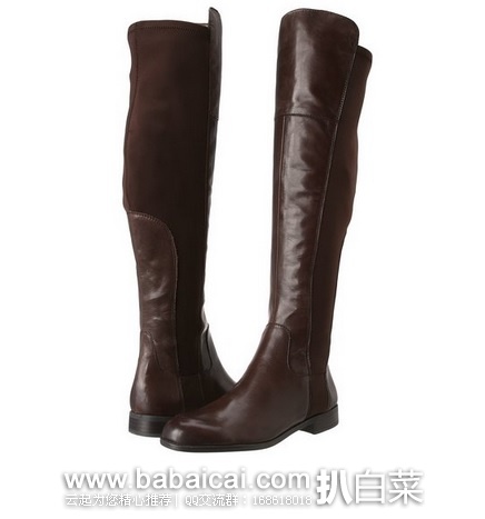 Franco Sarto L Motor 女式及膝长靴,机车风格。牛皮鞋面,侧面拼接弹力织布面,使得靴筒可以完美贴合双腿,无论脚肚子胖或瘦都可能穿下。内侧全开拉链穿脱方便。合成衬里和鞋垫,人造橡胶大底。十分适合秋冬季穿着,跟高3CM,行走轻松。