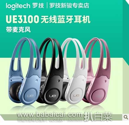 Logitech/罗技 UE3100无线蓝牙耳机带麦克风头戴式手机两用耳麦,,天猫今天粉色特价¥59包邮,这个价,只能说,喜欢就下手。天猫商城购买地址>>