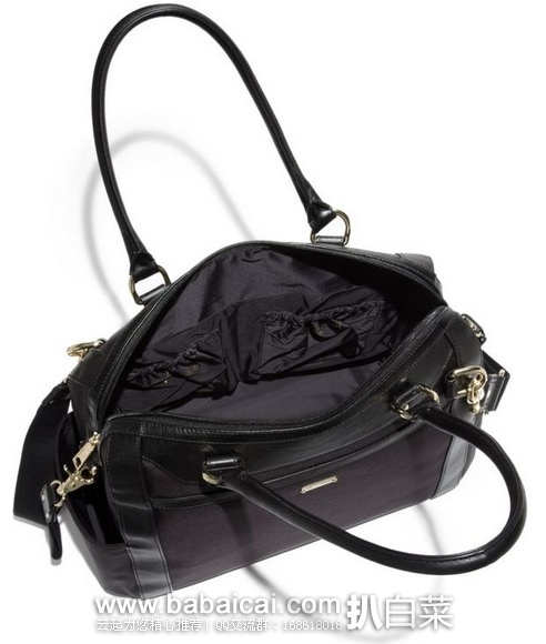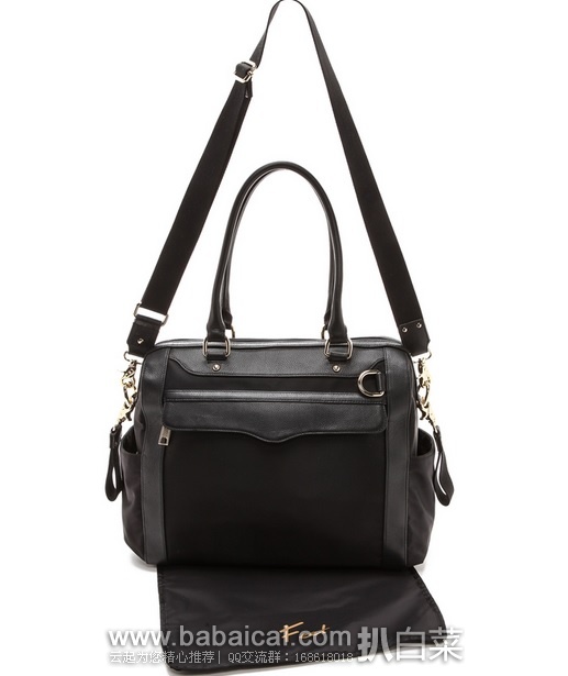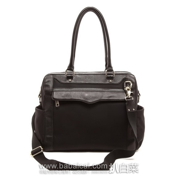 这款Rebecca Minkoff Knocked Up Diaper Handbag 女士时尚手提包斜挎包妈咪包,牛皮+尼龙材质,设有替换衬垫、3 个外袋和便于清洁的尼龙外层,纯牛皮饰边,设计时尚,带有Mac的元素,可拆卸肩带和卷式双提手。打开拉链后,露出设有 8 个口袋的带衬里内部。可提可背,非常实用,做妈咪包很合适,实为时尚父母的理想之选。