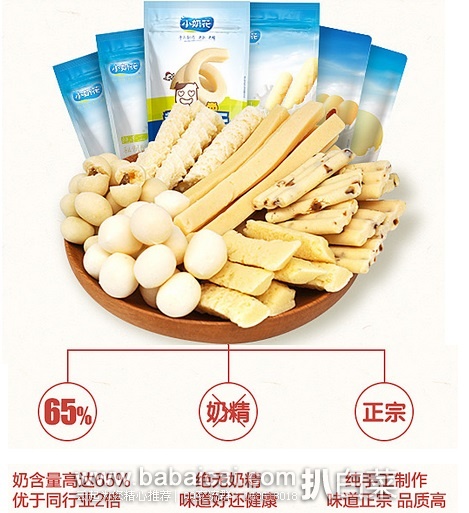 聚划算:正宗蒙古奶酪 实惠装 6大包810g 健康好零食限时团购价¥34.8包邮