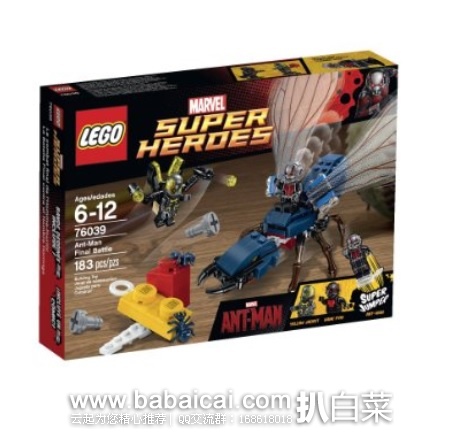 这款LEGO Superheroes Marvel's Ant-Man 76039 Building Kit乐高超级英雄系列之蚁人,货号76039,作为2015年新款,183个颗粒,略微显得有点抠门,但是喜欢就是喜欢,3个玩偶人仔,带翅膀的飞行器,7X25X9厘米的外形也还算给力,漫威迷+乐高迷,入坑吧。