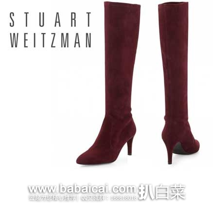 Stuart Weitzman Women's Coolboot Boot高跟及膝女式长靴,含莱卡Lycra纤维弹力反绒皮鞋面,内里真皮鞋垫搭配柔韧橡胶大底,无拉链所以必须要腿型比较细长。产地西班牙。靴高49.5厘米,跟高约8.3厘米,靴口周长30.5厘米。