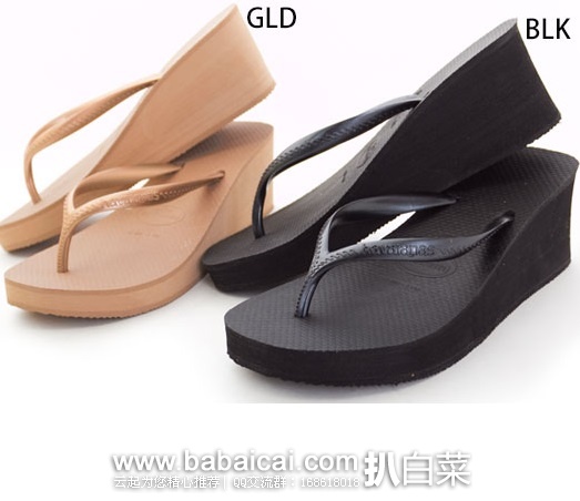 反季囤白菜!Havaianas哈瓦那 High Fashion金色经典款坡跟人字拖 原价$38,现历史新低$14.96,直邮无税,到手¥120,国内¥598