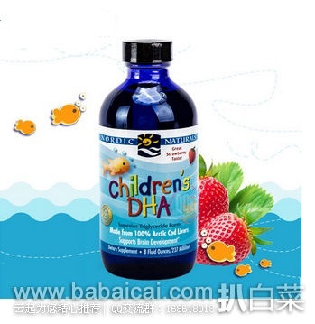 iHerb:挪威 Nordic Naturals 儿童深海鳕鱼DHA+D 滴剂 草莓味119ml 现$15.26,85折+凑单95折+直邮免运费,到手¥78
