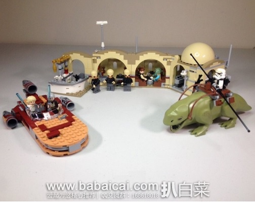 LEGO Star Wars 75052 Mos Eisley Cantina Building Toy乐高星战系列莫斯爱丽斯酒吧,货号为75052,5包零件共包含616个颗粒,最值得一提的是包含8个公仔人偶,还有一只沙兽,多把武器装备,莫斯酒吧,沙地快艇等等。拼装完成后,还是很具有规模。适合乐高星迷,尤其是公仔人偶迷入。难得如此多的公仔呀。