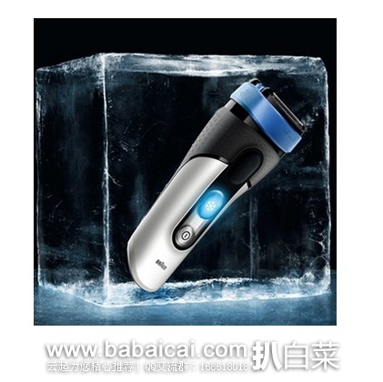 Braun Cool Tec Men's Solo Shaver博朗 CoolTec冰感往复式剃须刀,型号CT2S,德国产,荣获2013红点设计大奖,属于不走寻常路的类型。核心秘密武器是革命性创新热电冷却技术(TEC),在机身内植入了冰感系统,可以在剃须时带走皮肤热量,冰力舒缓,强力减少剃须刺激。干湿两用,三刀一体自由浮动系统,完美贴合面部轮廓。3级剃须系统,SensoBlade超薄几何触感刀网可捕捉不同生长方向的毛发,一次剃除长短须,不留胡渣。支持全身水洗,干湿两用。一小时即可充满电;5 分钟快速充电 = 1 次剃须。